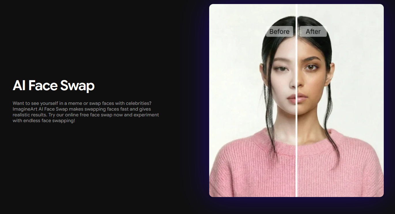 ImagineArt boasts a clean online interface that paves the way for simple and effective face-swapping. It features an AI face swap that allows users to create several versions in minutes. ImagineArt enables everyone to switch faces with anyone with realistic and natural-looking results.