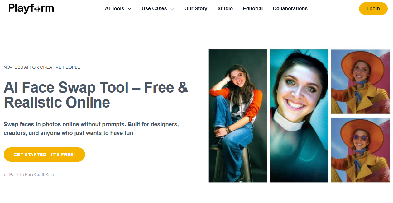 Playform is one of those face swap apps that work online without the need for prompts. It even offers an easy three-step face-swapping process. Users can leverage Playform when generating high-resolution outputs for multiple projects, including editorial compositions, mockups, or personal fun experiments.
